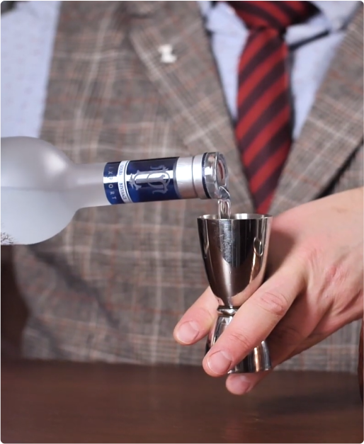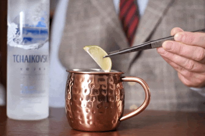 Pour vodka into a rocks glass, squeeze some lime juice, add ice, then some ginger beer and bitter. Mix carefully with a bar spoon and add a slice of lime.